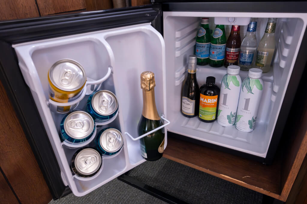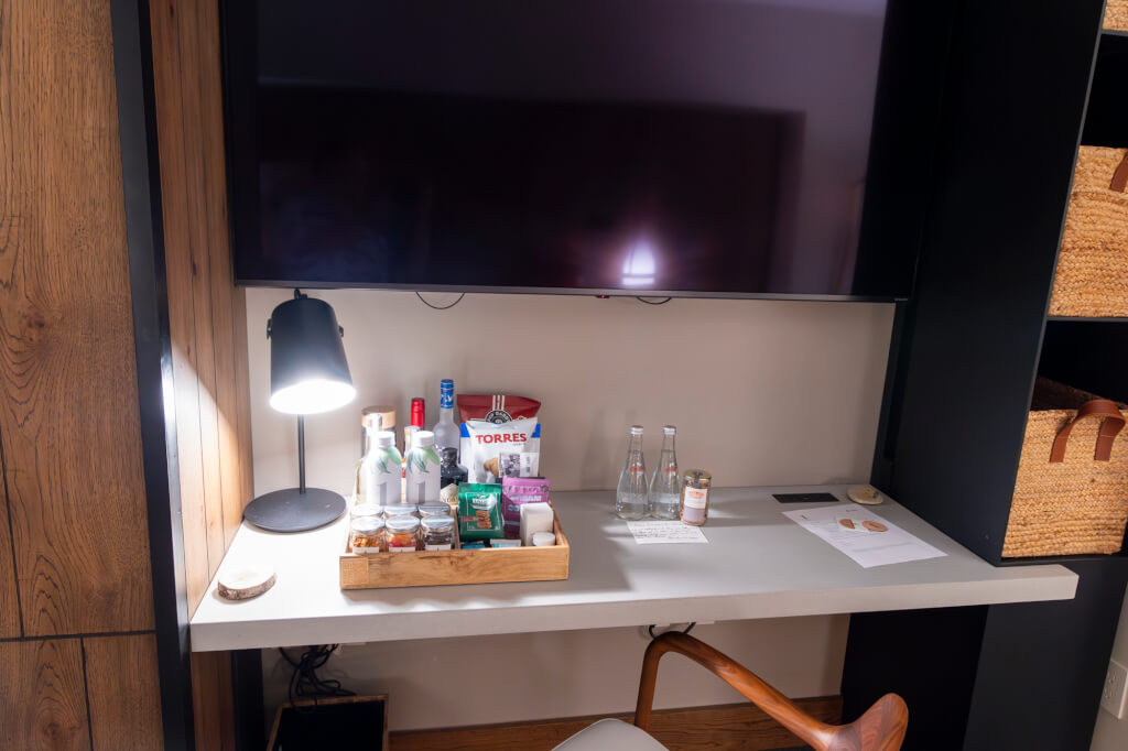 Luckily, we didn’t need any fridge space, as the fridge is filled with mini bar items, as was half of the desk space.