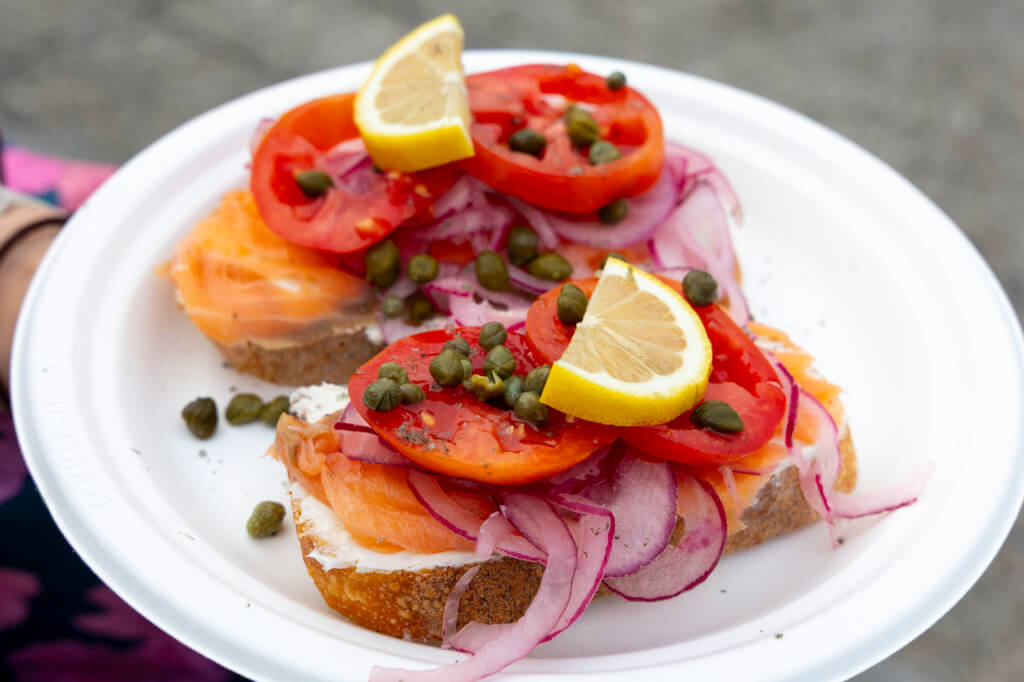 While there are a lot of interesting vendors at the farmers market, and we didn’t get to check them all out. However, there are several vendors we fell in love with. First up is Cap’n Mike’s Holy Smoke, which is a smoked fish vendor. There were a lot of interesting things to try, including smoked sablefish (butterfish), but we opted to try their classic smoked king salmon.